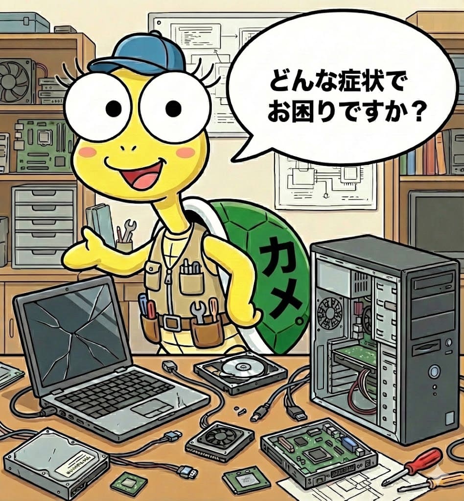 どのような症状でお悩みですか? パソコンの不具合の症状にもいろいろとございます 電源がはいらない、電源が勝手におちる、windowsが起動しない DVDの認識がおかしい、動作が遅い、ウイルス感染した などなど このページではよくある症状の簡単な説明、料金、修理期間の解説ページにそれぞれ飛ぶことができます
